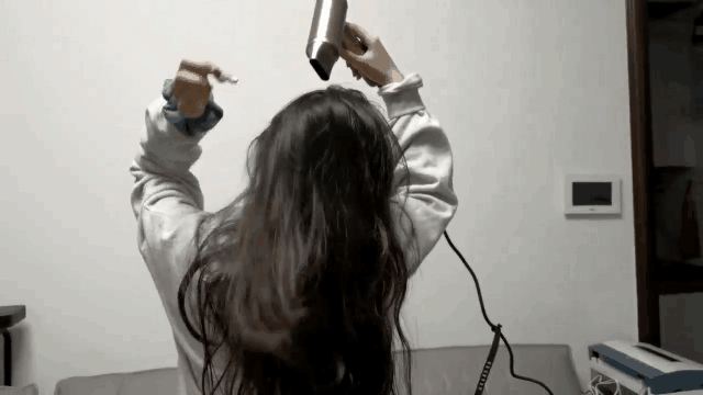 以前我用普通吹风机吹头发,不仅需要十几分钟慢悠悠吹干,而且吹完以后热得不行,头发越吹越干燥。其实是因为普通吹风机风速不够快,基本要靠里面的电热丝发热。吹出来的高温热风会对毛鳞片造成损伤,里面的蛋白质、水分流失,所以才特别“伤发”。