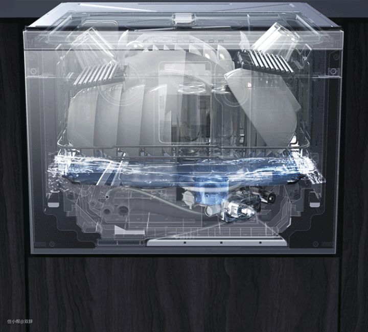 涡流洗,它的工作原理大家可以参考洗衣机,利用涡轮带动水流的转动,流动的水流对餐具进行冲刷。但是这种清洗方式的清洗效果实属不是很好,大家可以想象一下,如果碗盘是重叠放置的话,其重叠部分就会因为水流无法穿过而导致无法清洗干净,因此这类清洗方式现在也被市场淘汰了。