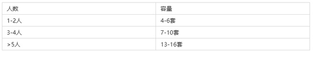 洗碗机的容量选择绝对是重中之重了,选的不合适的话,那就会面临明明有洗碗机却还要自己手洗的尴尬场面了。洗碗机的容量是以“套”为单位来表达的,所谓的一套餐具,就是指小碗、大碗、盘子、筷子、勺子、杯子各一个。市面上的洗衣机主要是有4套、6套、10套等,大家主要根据家里的人数进行选择。