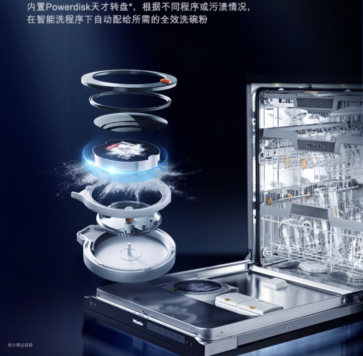 现在市面上有的洗碗机,比如Miele,他家的智能洗可以智能识别脏污程度和容载量,自动匹配洗碗粉,无需手动增加洗碗粉,再也不用担心洗碗粉放的过多或者不够了