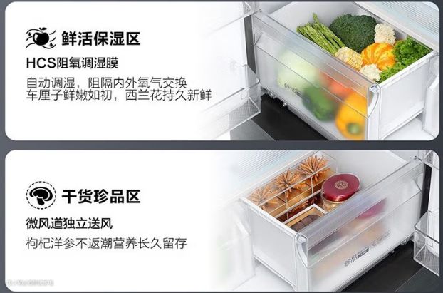 其他方面,采用纳米钛光效净化和Ag+钛光触媒除菌净味,除味的同时还能99%除菌,分解乙烯减缓蔬果衰老,搭载了无霜冷冻科技,有别于普通的风冷冰箱,抑制表面残留的细小冰晶;肉类专属星级料理仓2种模式,30分钟原味解冻和-0.6℃快速微冻;