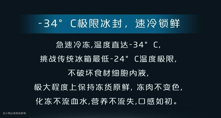 其他方面,搭配-3℃微冻保鲜,和东芝的星际料理舱类似,都是对肉类食材微冻保鲜,无需解冻,80分钟快速制冰,还能自动感应冰块缺少会自动补充,顶置压缩机,释放底部空间,纳诺怡X除菌净味,支持wifi智控。