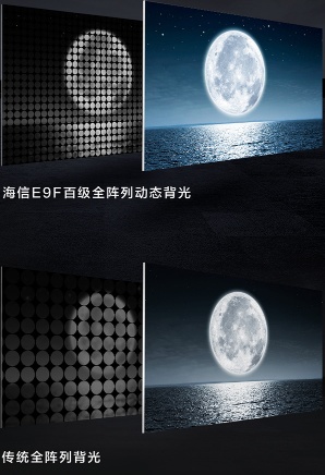 和上面的5E8D系列一样,也是采用ULED超画质技术,悬浮全面屏,140%量子点高色域,不过这款多了100级全阵列动态背光技术,比普通背光技术多看2倍的画面细节。