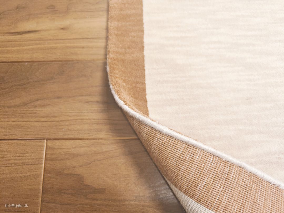 从侧面视角,也能发现铺上后与地面特别贴合,四周都会特别平整,这样会显得很有质感。相对劣质的地毯,四周会翘边,不好看!
