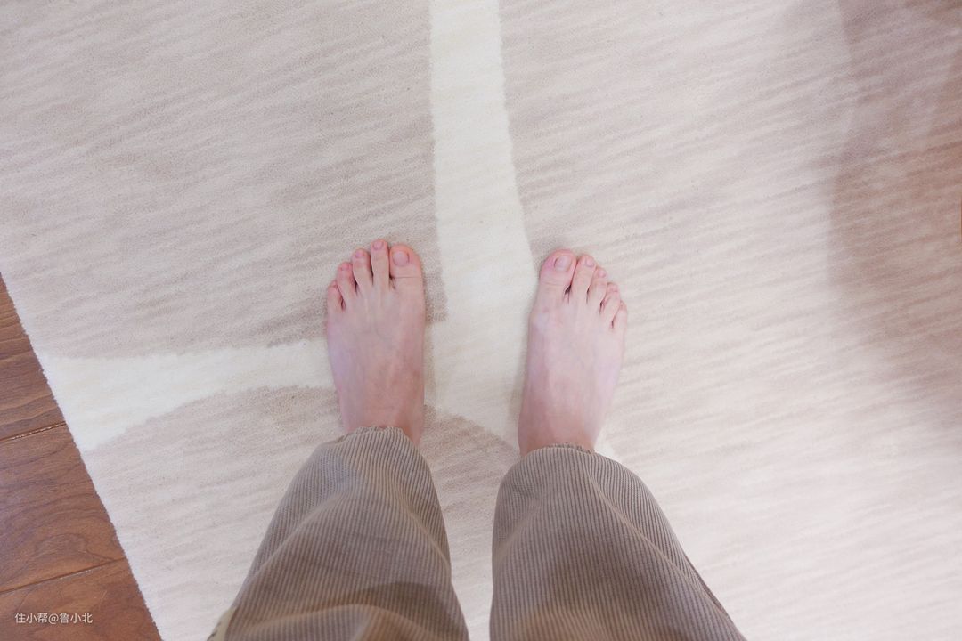 脚感也非常不错,踩上去能感受到羊毛的支撑力,虽然有支撑感但也不会偏硬,整体是很柔软,赤脚也非常舒服,不止我自己喜欢,我家猫也喜欢,不过要教育好猫猫别让它抓地毯。