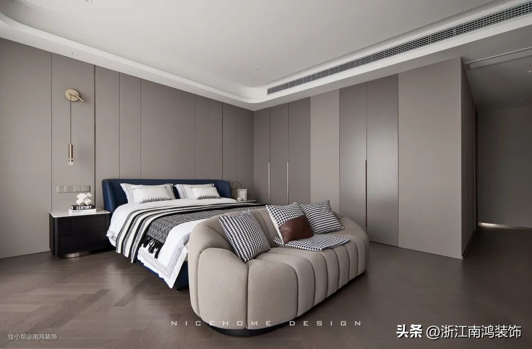 定制的嵌入式衣柜还可与床头柜、书桌等进行一体化联动,整体性超强!