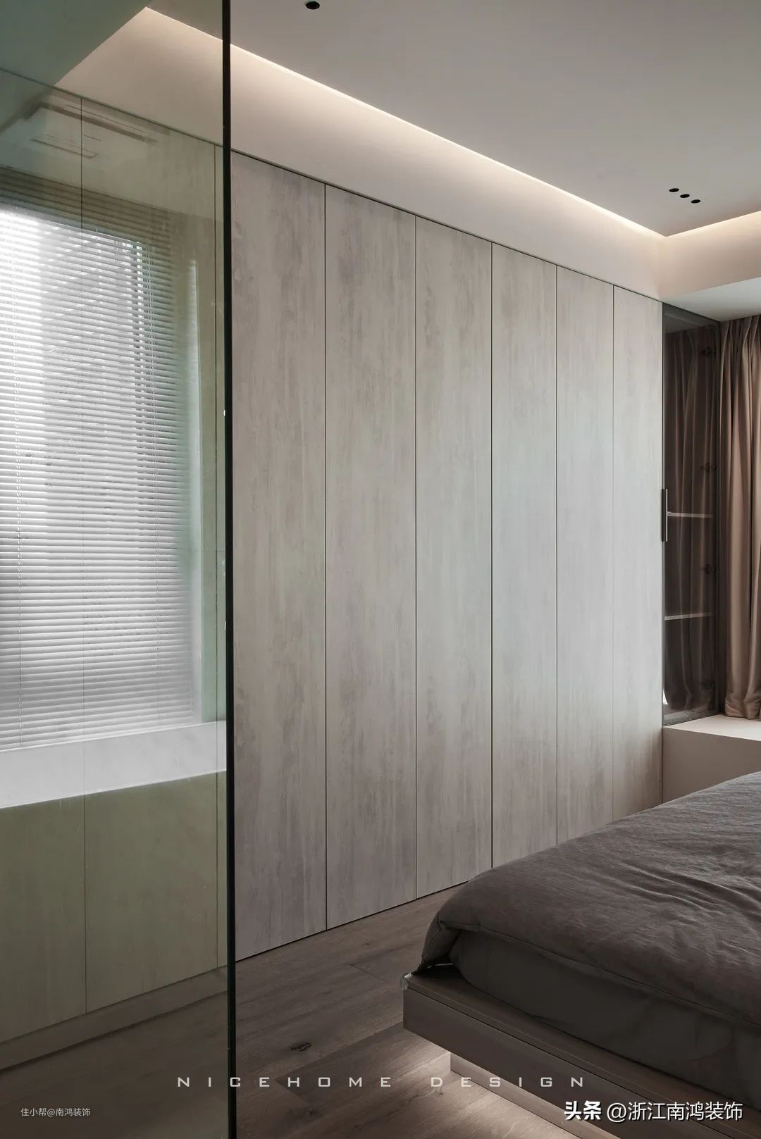 现在极简风格非常流行,嵌入式再加无把手设计,这种极简式衣柜可以说深度诠释了何谓至简美学。