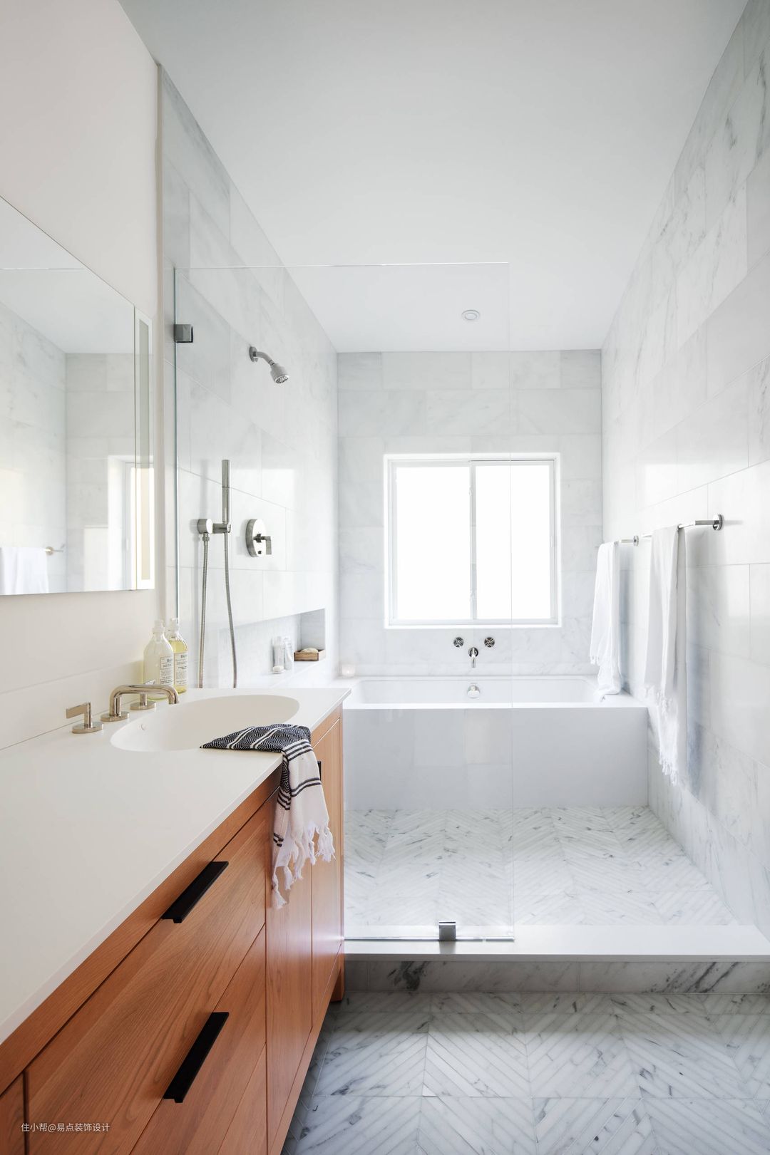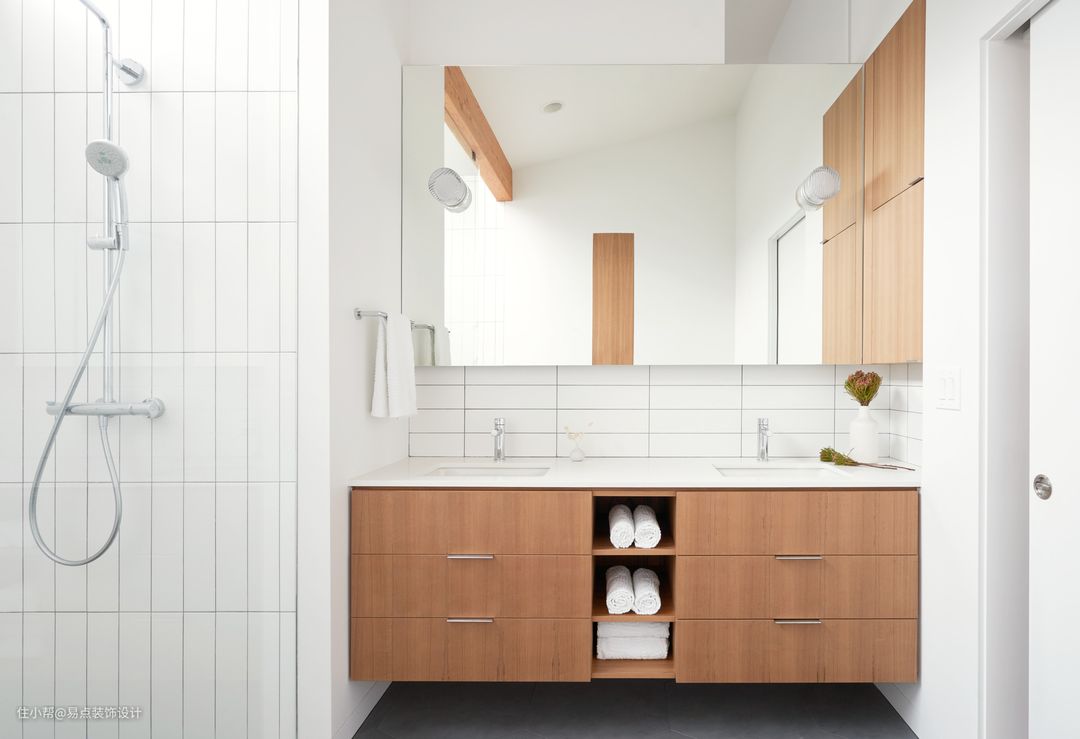 干区和湿区墙面可以分两部分去做,不一定要用同种材质,这样空间比较多样性。
