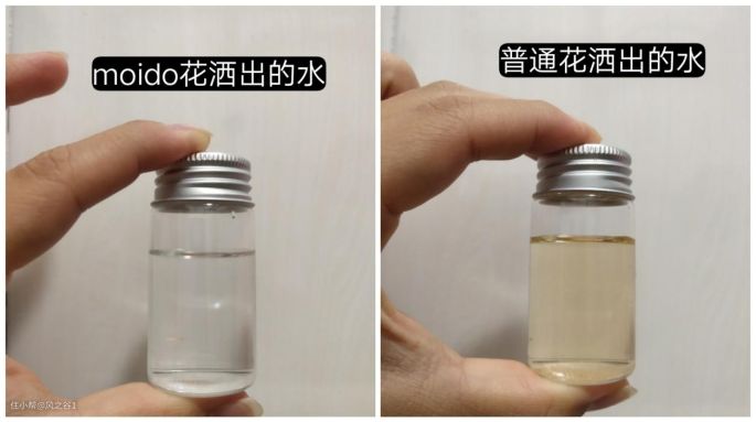 为了证实他所宣传的过滤功能,我也有用他配套的余氯测试剂测试过,moido净水养肤花洒所喷出的水流确实比我之前用的普通花洒出的水要清澈干净许多。