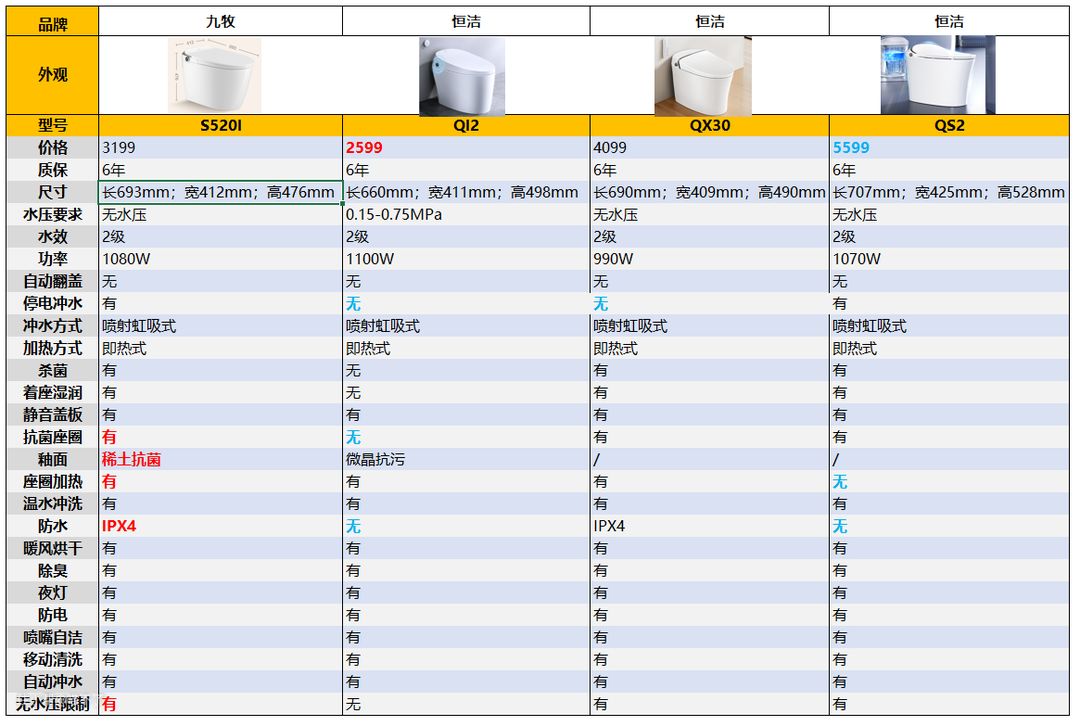 那么废话不多说,直接上我们今天要横评马桶的参数列表