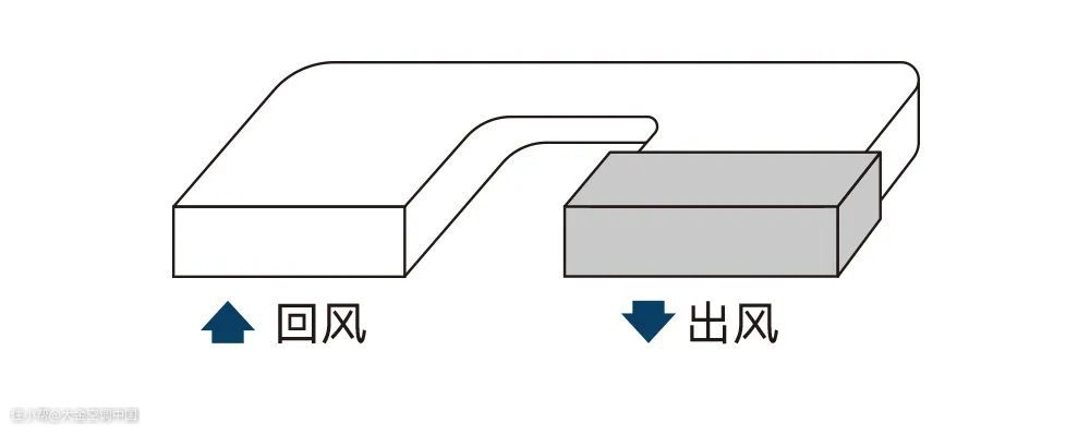 侧出下回是最常见的中央空调出风方式。室内气流自上而下循环流动,制冷效果好。