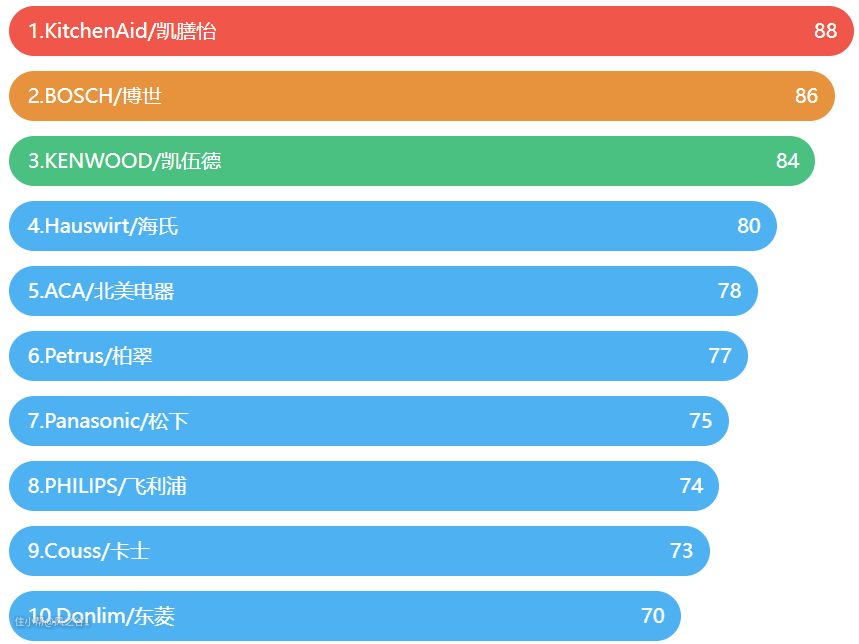 基本上不管是哪个网站的品牌排行榜,名列前3名的,大部分是国外品牌的厨师机,可见国外品牌因为在厨师机上的起步早,在质量、技术等各方面确实会优于国内的品牌。对于外貌协会来说,颜值上,进口品牌也有绝对的优势,除了常规款以外还有各种限量款合作款。