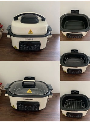 现在家电的设计趋势是集合多功能于一体,这一款多功能锅也是集合了:烤箱、空气炸锅、大容量深煮锅、蒸炖锅、煎锅和干果机等12大功能为一体,绝对称得上【一机多用】。