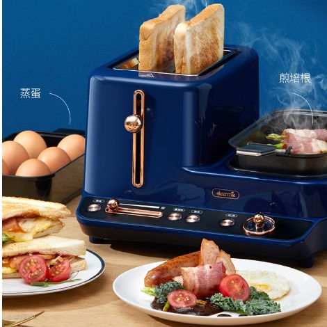 一如既往的是德尔玛家轻奢颜值,体积小巧,一机多用的早餐机,左右双区组合,可以独立操作,也可拆换烤盘。三明治、厚蛋烧、手抓饼、蒸蛋、煎培根、热牛奶,蒸、煎、烤、炒都可以一机操作出来。花样早餐不重样,早上出门比较早,有了这款早餐机,节省了大量时间