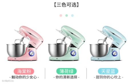 长帝在国产厨师机当中算是标杆品牌,专注烘焙电器已经长达23年了。6L超大容量,15分钟快速出手套膜,6档动力可任意针对性选择,一次可和面2斤支持五六人分量,标准配件可支持和面,打发蛋清奶油,搅拌各种肉馅,3种颜色都很好看,到手不到500,还是性价比很高的