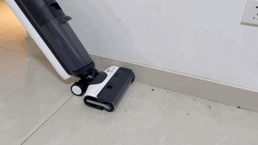 对于芙万二代的地刷,我也是要特别拿出来点个赞的,它采用的是磁吸式滚刷,单侧及前部无边框设计,在经过踢脚线边缘以及家具腿边时,基本没有死角,其他洗地机不能清理掉的墙角周边以及家具腿边的灰尘脏物,它也能轻轻松松就清理干净,十分值得赞赏。
