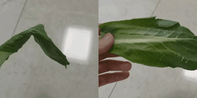 分别使用原里和松下对两片状态大致的菜叶进行吹动5min。
