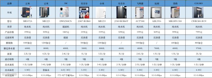 为大家整理了10款厨下式的参数表格,方便大家对比与参考: