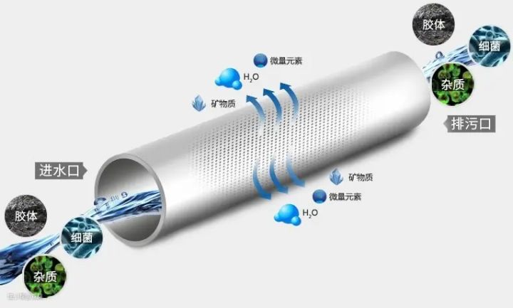 它的过滤更为精细,可以有效的过滤水中的盐分、病毒细菌以及微生物,同时还可以溶解气体。