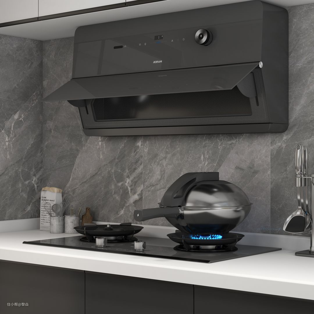 去体验一番业主后果断入手了老板电器ROKI数字厨电创造者i1的超薄油烟机、灶具、蒸烤炸一体机、洗碗机、明火自动翻炒锅和ROKI智能烹饪音箱6件套。避免外卖环境和食材所带来的食品隐患。健康饮食健康生活。AI助力,烹饪无压力。节约时间,享受生活。