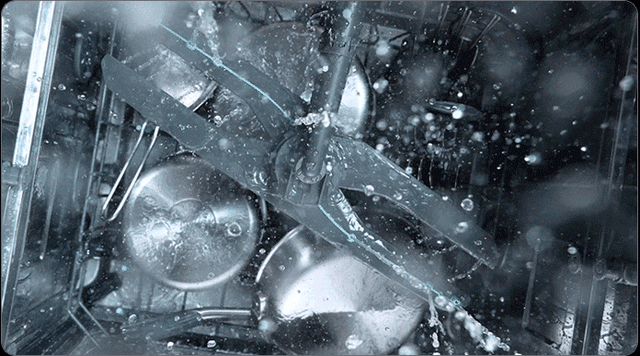 普通的洗碗机很多都是只针对餐具的内部进行清洗,所以它们的中臂一般都是一字型设计,只能进行单向喷淋,单向喷淋最大的缺点就是只能侧重于餐具的内部清洁,对餐具的底部的清洁效果不好,但是我们平时的餐具都是会叠成一摞,餐具底部也会沾染油迹;