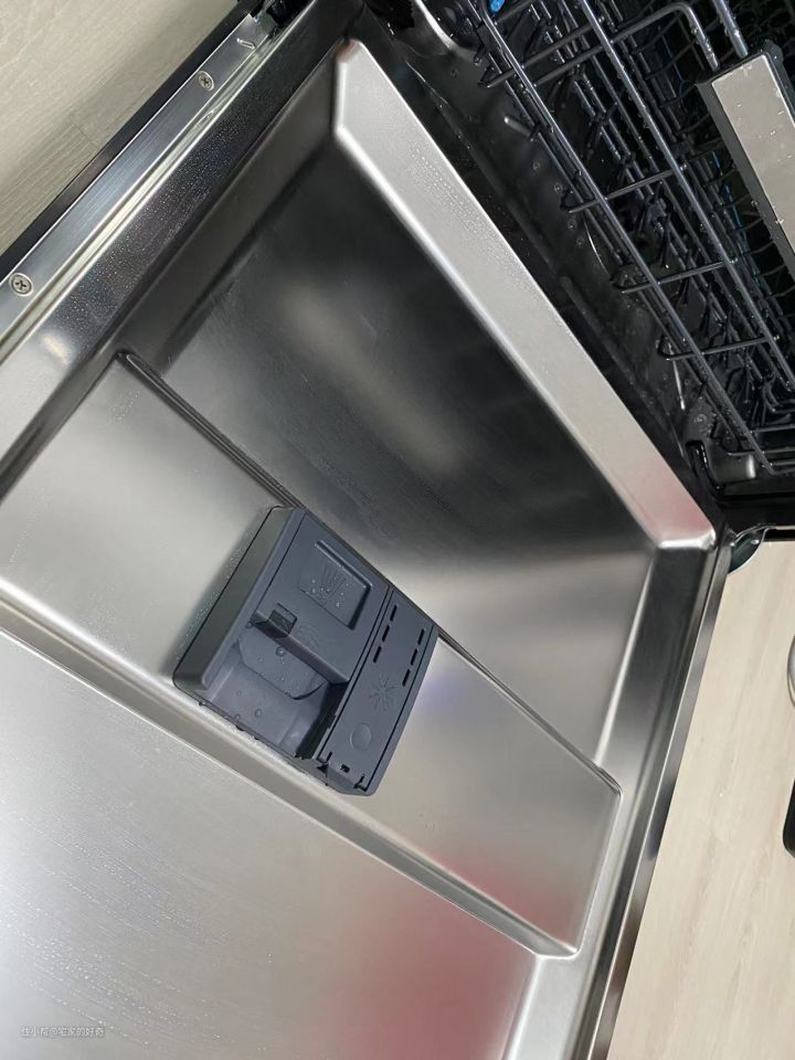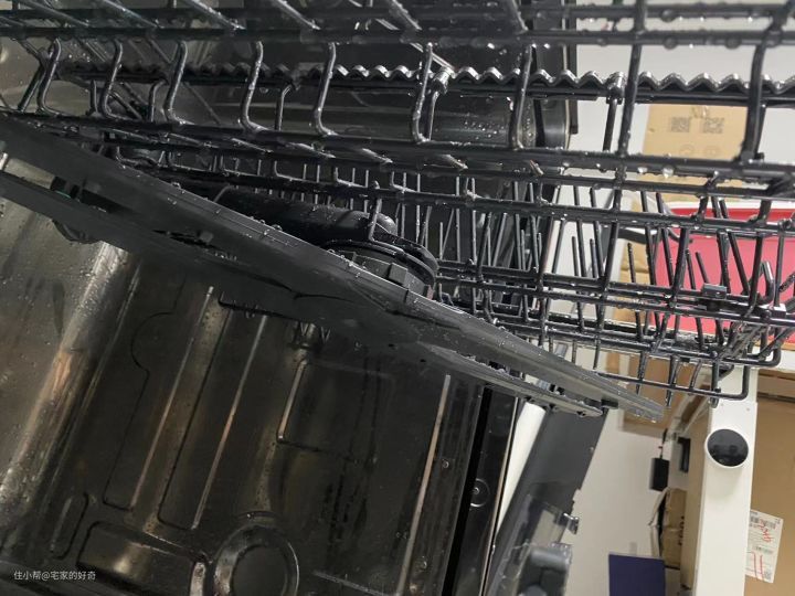 在使用过程中,餐具洗完后自动弹开柜门进行烘干,下面是餐具清洁完成后的实拍图,可以看到所有餐具包括碗篮都是十分干爽的,机器的内壁刚开始会有一些小水珠,但这种微小的水珠很快就会被蒸发带走,总的来说这款洗碗机的烘干功能还是很强大的。