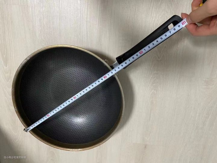 我还专门测量了柜篮和我家炒菜锅的高度和长度