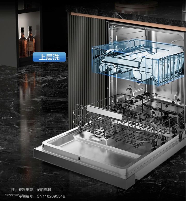 虽然对比欧标洗碗机来说这个尺寸有点矮,但是这个尺寸是可以适配国内大部分的橱柜设计且容量是满满当当的15套,对空间的利用率非常高。
