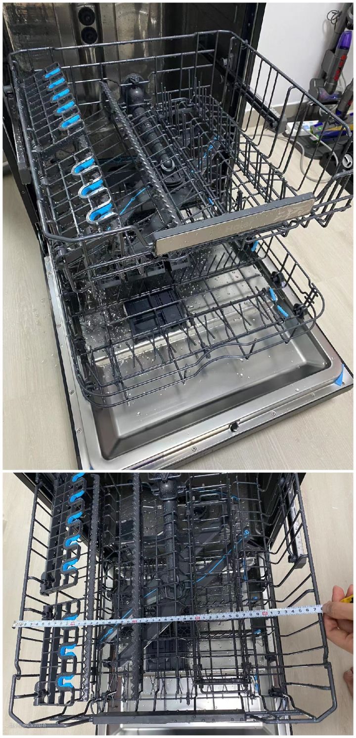 在洗碗机上面踩过坑的朋友应该会知道,有的洗碗机看起来虽然容量很大,但是内部全是固定收纳支架,但是我们中式的餐具尺寸一般都是非标准的,这就造成了洗碗机内部空间利用率低的情况,华而不实说的就是这种固定式收纳支架了。