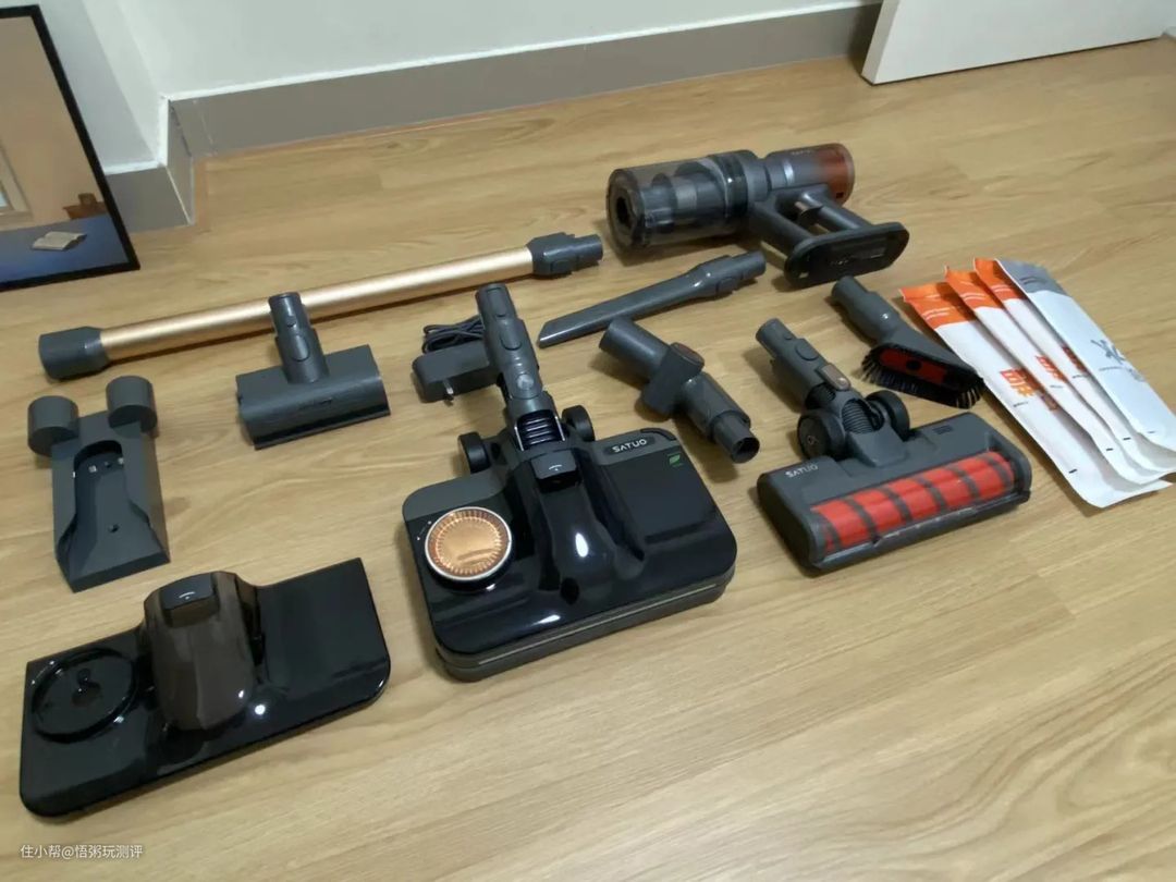 收到货后整整一大箱,毕竟是用于全屋清洁的产品,配件还是非常丰富的,上一张全家福: