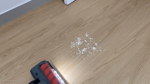 从动图我们可以看出这款拖地头不仅能把酱油渍打扫干净,而且吸尘也可以兼顾,不会让干湿垃圾糊到一起,很顺畅的一次清洁体验