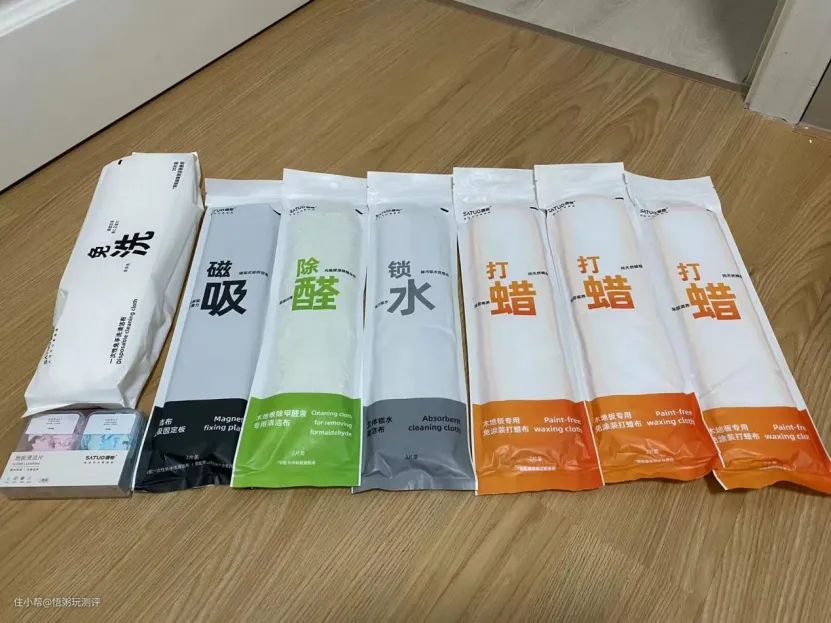 厂家还贴心的送了很多不同类型的清洁布,包括15组一次性清洁布、3组免涂装打蜡布、2组地板清洁片、锁水清洁布和磁吸固定板。