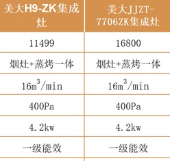 2、两款配置都是一模一样的,而且都是蒸烤一体集成灶,所以如果论性价比的话,H9-ZK更高,烟机的净烟率跟灶具火力值都是一样的;