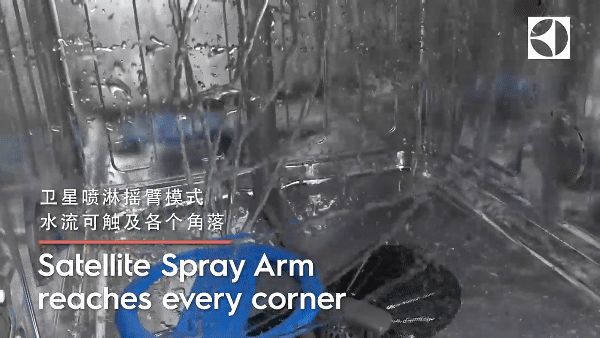 为了能够让洗涤的范围更全面,这款洗碗机还增加了卫星摇臂清洗系统。这个系统是伊莱克斯独有的特色,主要体现在:卫星摇臂喷淋系统可以从多个角度进行喷射水流,同时它是具有精密算法的,它的出水是可控有序的,从根源上就拒绝浪费水资源。这对于很多使用者来讲,也是具有优势的地方。对比配备一般的摇臂系统,伊莱克斯的卫星摇臂更具有精准性,360°无死角清洁