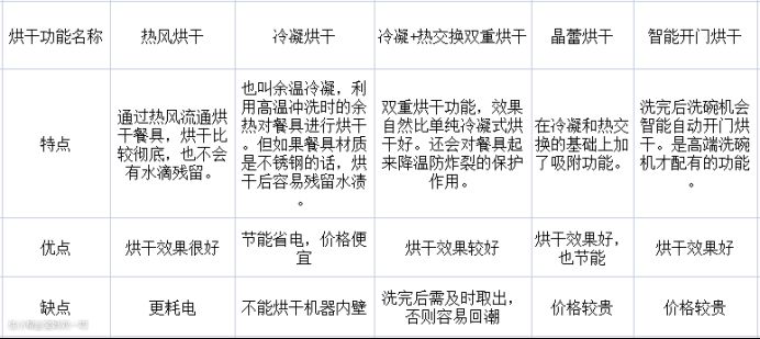 冷凝式烘干模式就如同余温方式,它们的缺点都是会在碗碟上留下水渍,容易滋生细菌,不建议选择。
