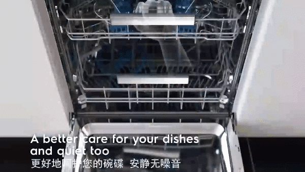 在洗涤方式上,这款产品采用了三层喷淋清洗系统,能够实现了上中下广范围的分布,同时配合洗涤泵的高压冲刷,拥有强劲的洗涤能力,将碗碟上残渣与油污瞬间冲洗干净。这碗碟前后对比简直是“碗”若新生,与手洗不相上下的清洁能力,当然是喜欢啦!