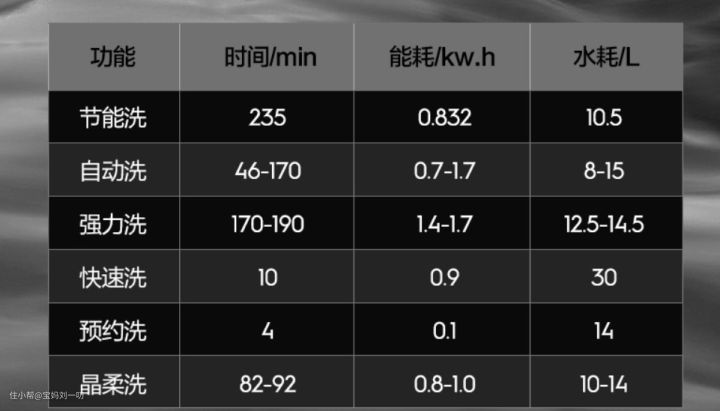 除了上面为大家介绍的以外,洗涤程序支持6种模式,且都具有相应的时间。产品还具有30min附加快洗程序功能,也就是倍速时控功能,能够缩减50%的运行时间,同时还能保持洁净效果。