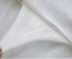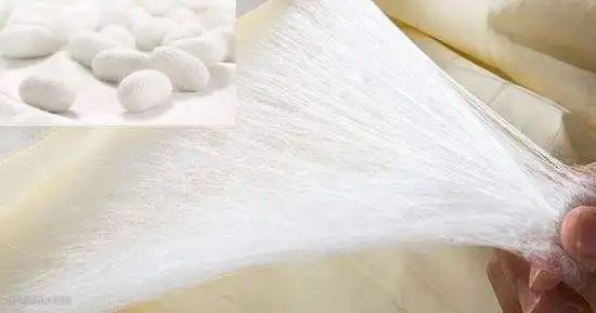 1. 100%桑蚕丝:桑蚕丝主要产南方,是人工家养,以桑叶为食,洁白如玉,略带淡米黄,手感细腻、柔软、光滑。