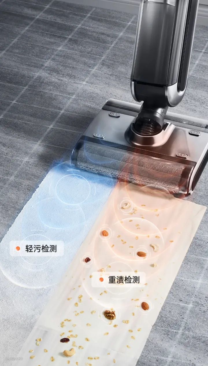 工作时,洗地机还能智能感应到地面情况,进行模式的选择和吸力的自动调节。如果在打扫的中途有什么事情,直接松开手,就可以先处理其它事情,等事情完成后继续清扫工作。不得不说,会智能站立的洗地机真的很方便。