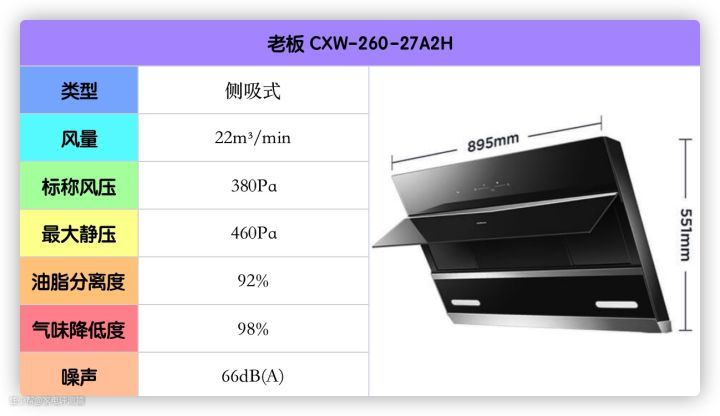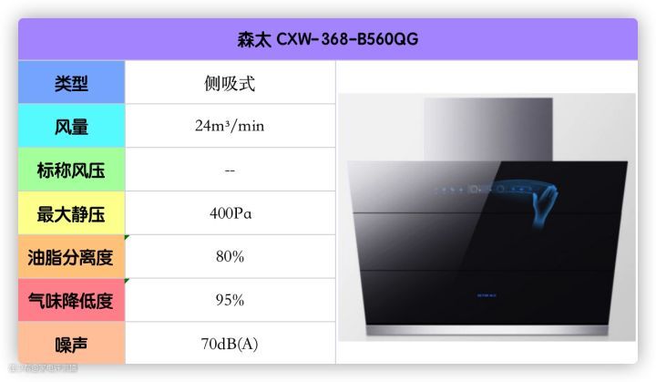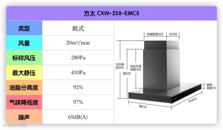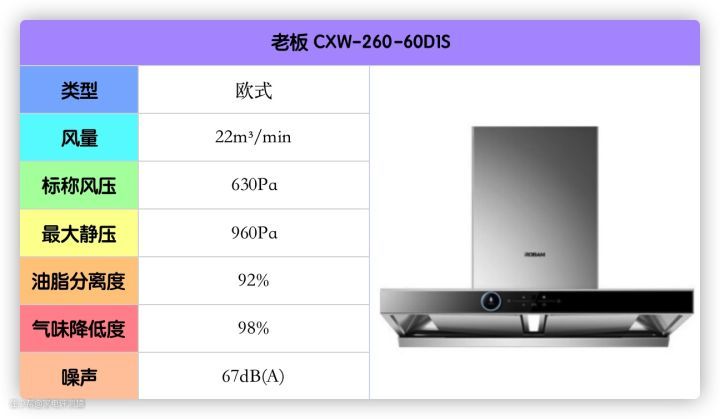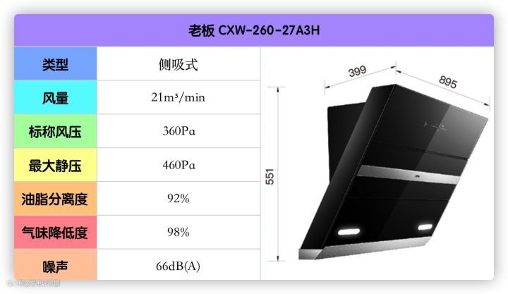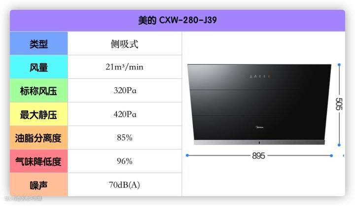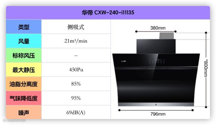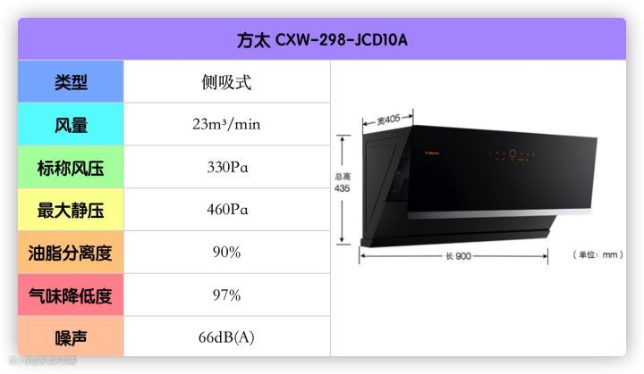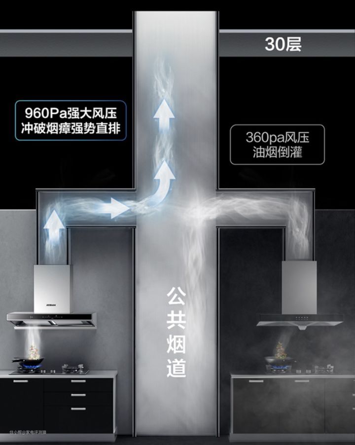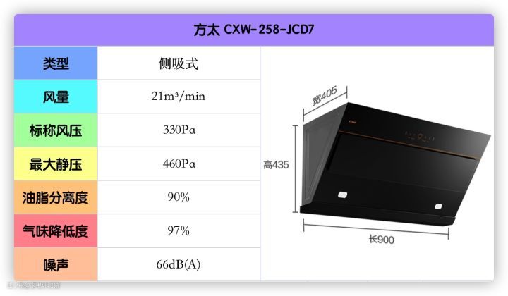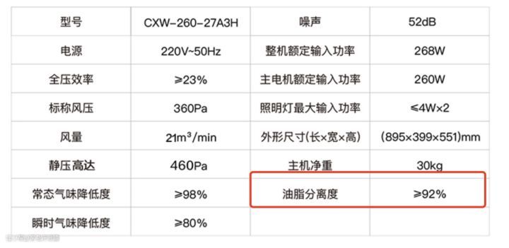 这款的风量、风压、油脂分离度等都刚好达标,不大建议高层住宅的低楼层用户使用。