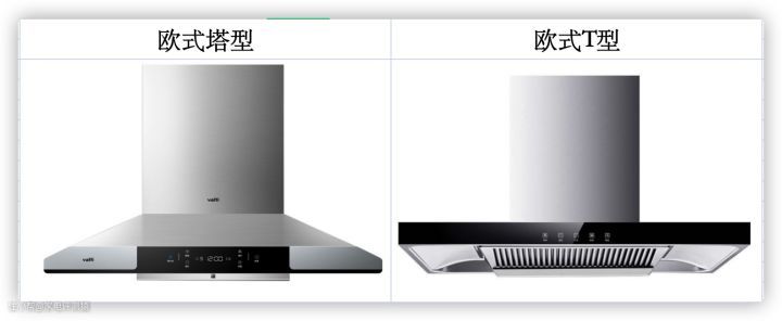 欧式抽油烟机主要分为T型和塔型,能很好融入现代厨房装修风格,是目前依然比较流行的抽油烟机。