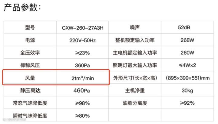 上文也有提到了,风量决定了吸走油烟的能力,是购买抽油烟机时需要重点关注的一项参数