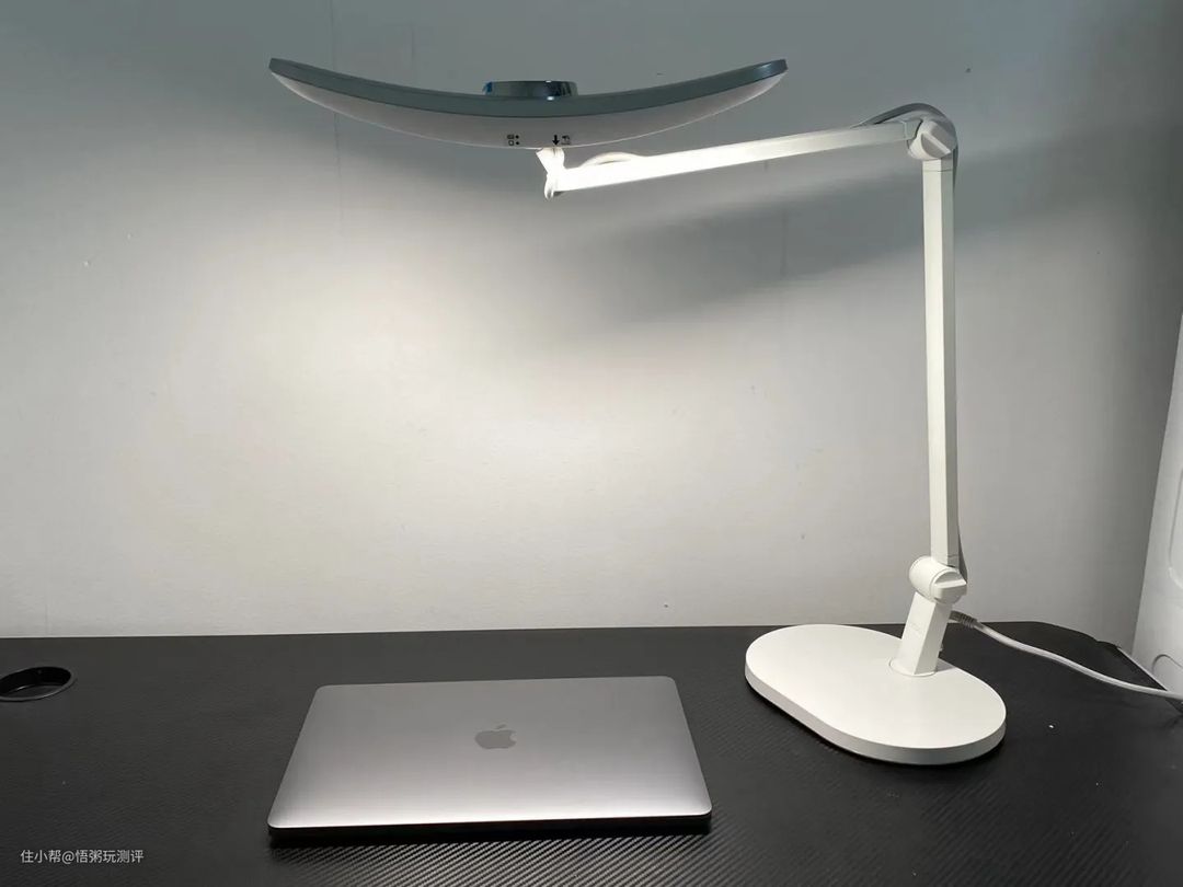 明基这款台灯的造型比较特别,采用像笑脸一样的圆弧设计,120cm的宽广椭圆光照范围角度会比其他台灯要大一些。功能方面有智能感应环境光并自动调整光源位置,比较省心。