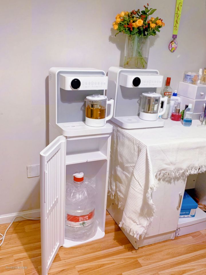 集米C5Plus立体式设计高度刚刚好,下方分为水桶和储物两个空间,换水很方便,再也不用费力搬起水桶倒扣换水,上方的储物空间可以放置茶叶、咖啡料包,收纳也很方便,也避免了空间杂乱。