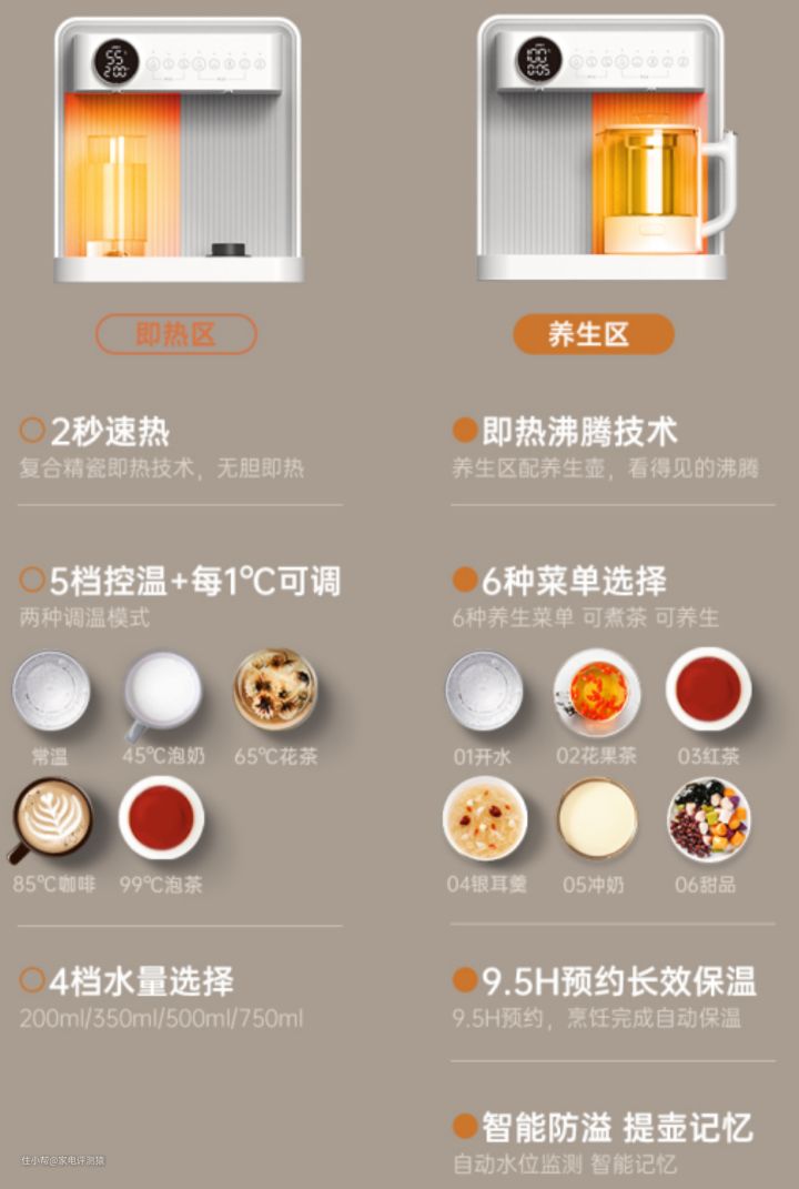 集米C5Plus对即热功能和养生功能作了分区,相互独立互不干扰,用起来更加方便。