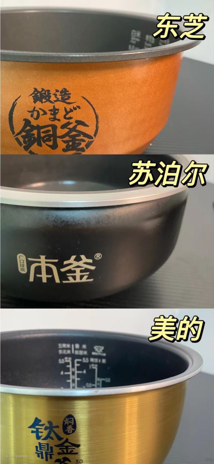 我分别尝了几口,美的因为中间的糊米,口感吃起来比较软烂没有嚼劲;可能日本人比较喜欢做寿司和饭团,我尝东芝的饭比较干一些,味道很香;苏泊尔的米饭感觉恰到好处,软硬适中,每一口都能吃出以前农村吃的柴火饭的味道,而且每一口米饭在咀嚼的过程中都散发出高价泰国米特有的甜味,有种把普通米煮出高价米的感觉,平时只吃一碗饭的我这次把苏泊尔这一锅都给干完了!