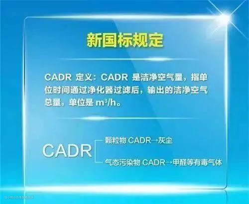 CADR指的是在一定的单位时间内能够输出的洁净空气量,它的代表单位是m³/h,其数值越大,表示在1小时内的净化空气量越多。 它是分为固态值与气态值的,所以在选购时要看清楚针对的是哪种污染物,同时如果出现单一的CADR值一定要询问清楚。 而且单靠CADR值是不能决定空气净化器的洁净能力的,它需要与CCM值放在一起做综合考虑。