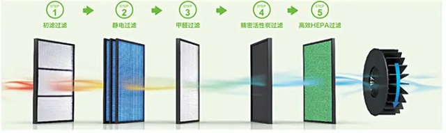 过滤式净化方式,配备7重式渐进过滤网结构,过滤不同污染物的同时还延长滤网的使用寿命,还做到了降噪处理不影响正常的生活;对鸡齐全的去除采用固化分解,杜绝出现二次污染;此外,产品还增加了除臭基材,能够去味除臭保障新鲜空气