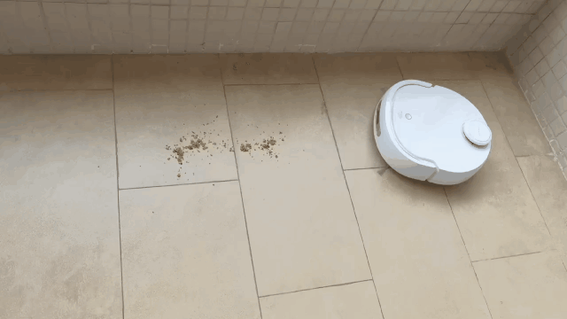 清扫纸碎和灰尘测试: 可以看到云鲸J2的吸力足够大,地面上的纸碎都能轻松吸走。纸碎都能处理,灰尘这些小颗粒物那就更不在话下,轻轻松松就能将灰尘一扫而净。