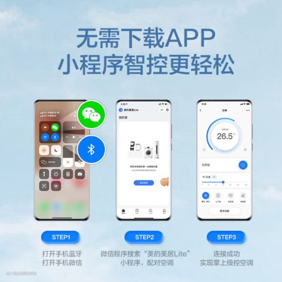 风尊还有很多特色功能,例如蓝牙闪控+美的美居APP智控